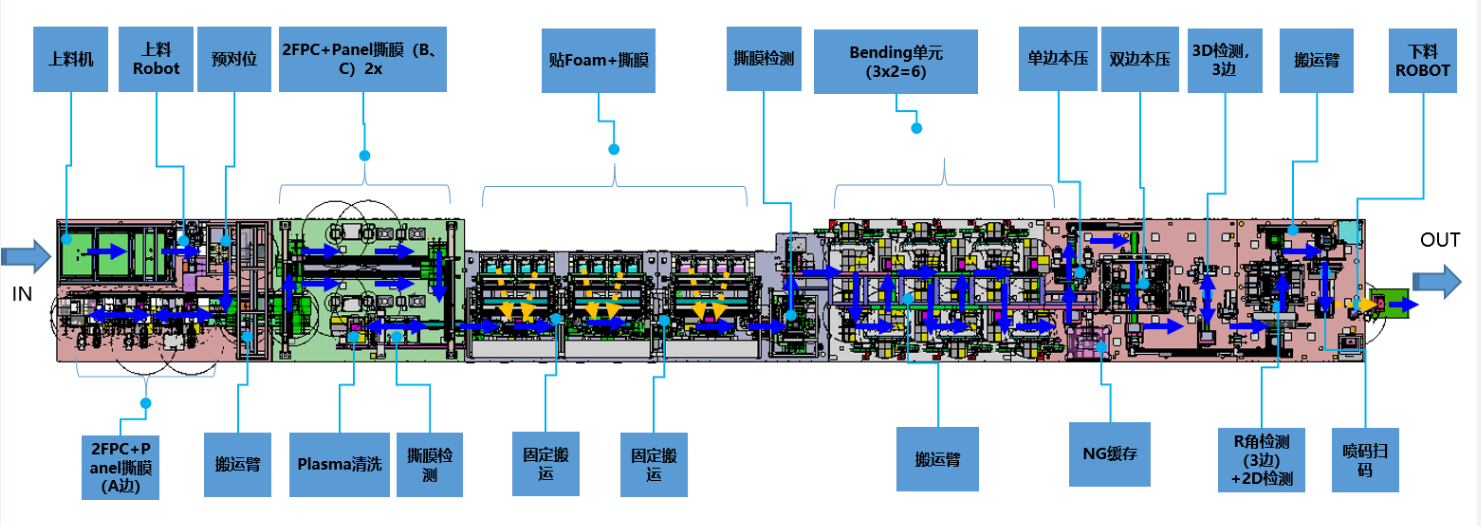 超聲波清洗+等離子清洗等裝置對屏體清潔后,在保證屏體潔凈度的情況下,通過導電膠將元件在一定制程條件下與屏體有效連接的設(shè)備。