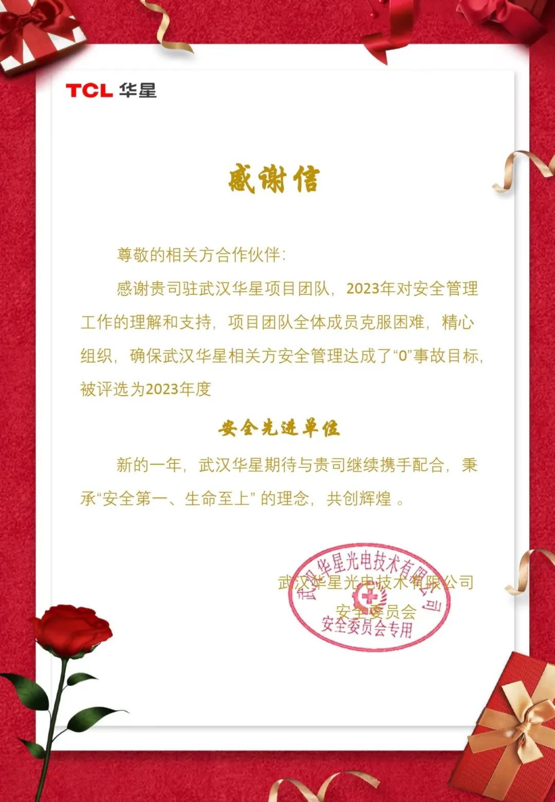 截止2023年底,TCL華星光電已連續(xù)五年授予Tensun騰盛“安全先進(jìn)單位”,在五年的服務(wù)時(shí)間中,騰盛技術(shù)服務(wù)團(tuán)隊(duì)達(dá)成了“0”事故目標(biāo),得到客戶的高度認(rèn)可。