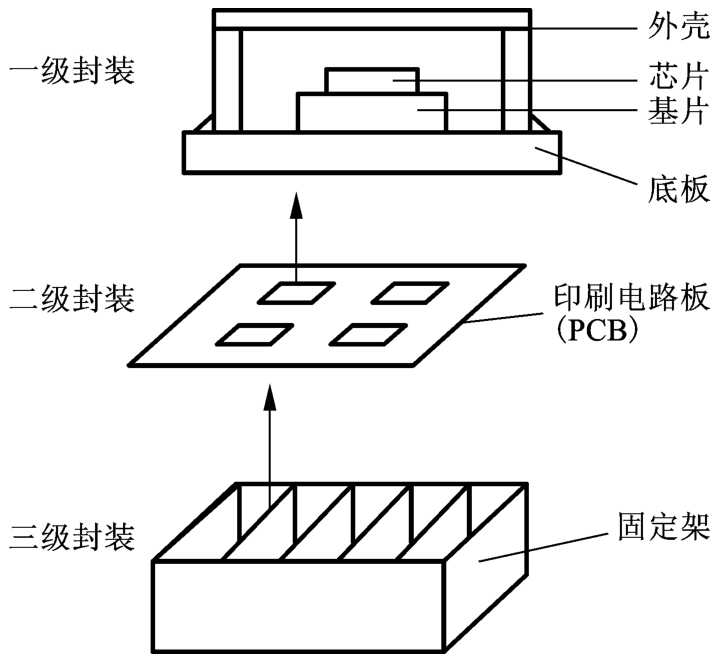 微電子封裝技術(shù)即半導(dǎo)體封裝技術(shù),或先進(jìn)集成電路封裝,主要起到電源供給、信息交流、散熱、芯片保護(hù)和機(jī)械支撐等作用,一般可分為4個主要層次:
